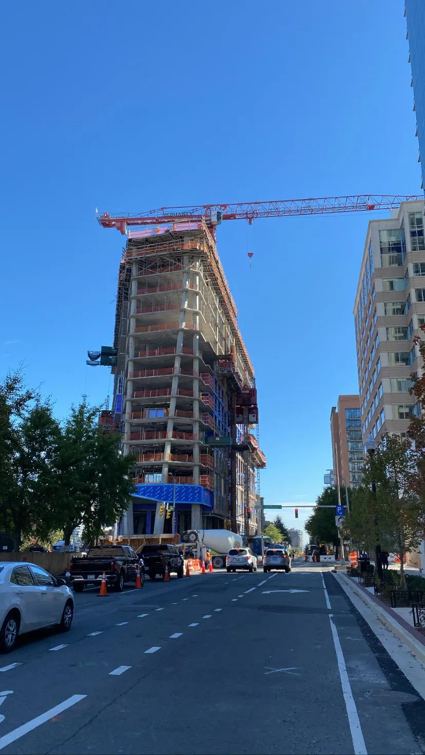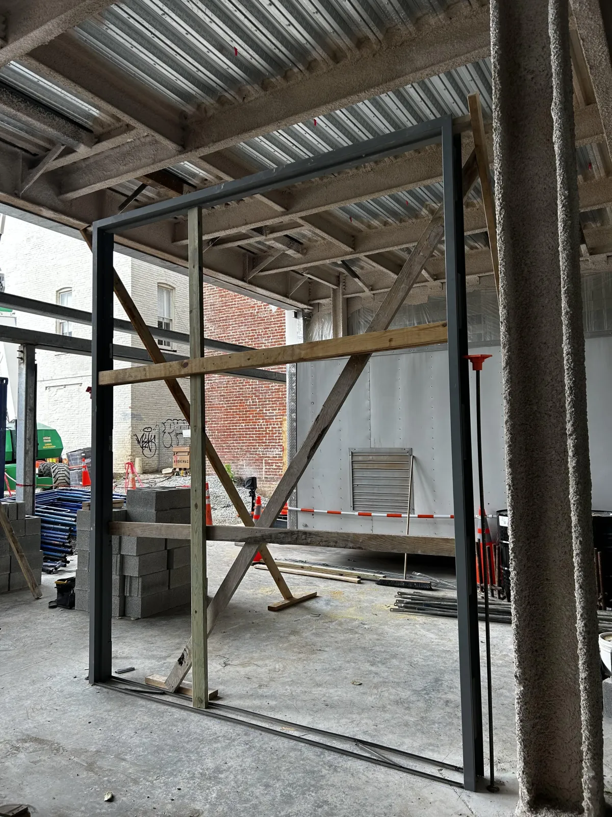 pedestrians, trash chute enclosures for waste management, and temporary walls for